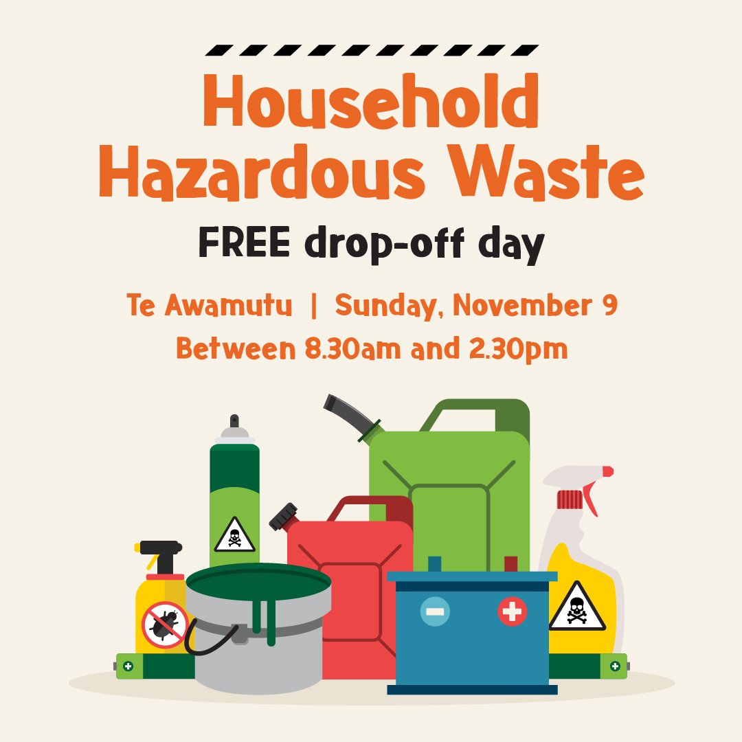 For household hazardous wastes, try specialists like ChemCollect or Waste Management and get a specific collection arranged for what you have. We fund an annual collection of household hazardous waste at the end of the year in either Te Awamutu or Cambridge.